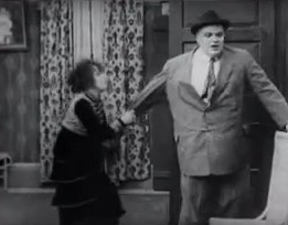 Roscoe opened the drawers, looking for his papers, Mabel heard the noise and took a revolver to defend herself as she thought the house was being burglarized. Roscoe ended up being shot on the butt and locked himself in the closet in sheer horror. Mabel kept on shooting and the driver entered the house to check what was going on, but he was also scared with Mabel’s shootings. After a while, Roscoe left the closet and Mabel fainted in his arms. When she woke up, Roscoe asked Mabel to calm down. They said good bye, Roscoe left home and met the driver (who at this point was hiding himself in the car after all that mess inside the house).