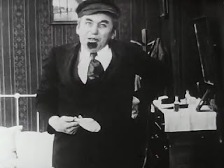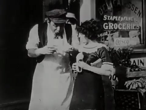 A short time later we could see that Meyer bought some fresh cheese. The reason of it was not disclosed at first, but the audience would know it really soon. Unfortunately it turned out that the cheese did not really smell well (actually, it stink). Some time passed, both men got ready for the party and “dressed for the occasion” as one of the intertitles says. Meyer arrived at the party and gave some flowers to Mabel. People were dancing happily and Mabel and Meyer joined them in the ballroom. Then Schnitz arrived and he brought flowers to Mabel too. He gave them to her and started dancing with Mabel, pushing Meyer away from them. Meyer did not take this insult easily and would take a revenge in the first opportunity. Actually, “Schnitz scents trouble” as both men confronted each other, Mabel got upset and the environment of the party, which was happy until then, became tense.