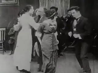This is one of one reelers (short films that lasted around 11 minutes) made in the beginning of Keystone studios (which had been opened on the previous year in California) with simple plots and straightforward gags, including overtly fake facial hair, exaggerated gestures, actors falling on their butts and even weird dancing (the latter being pretty much the case in this film). Mabel, so sweet and cute, had two suitors, who fought each other in order to have her affection. Mabel invited one of them (Schnitz, the grocer, a character played by Mack Sennett himself, who was the founder and director of Keystone Studios in real life) to her party. The problem is that Mabel also invited her other suitor (Meyer, the cobbler, a character played by Ford Sterling, one of the most popular comedians of the studio in its first years). Of course it would trigger the rivalry between both men even more.