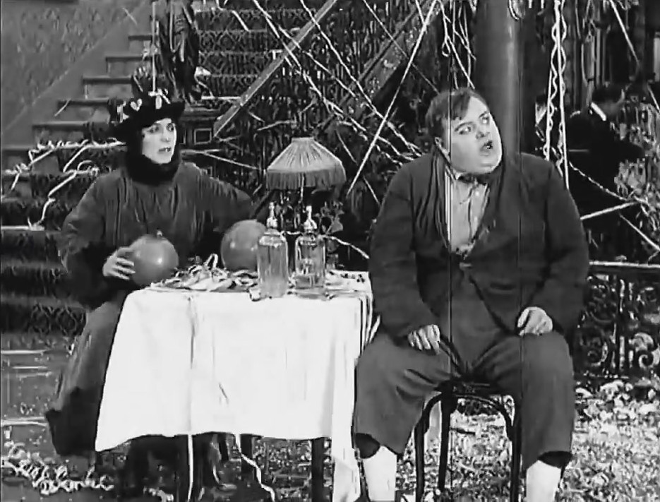 The broker finally returned to his office and was told by Al St. John that his wife “went out with the janitor”. The broker was furious and immediately took a revolver that he kept in his drawer. He was determined to take revenge and while his wife and the janitor were having fun in the café watching a rather over the top show, the husband arrived to wash his honor with blood. He tried to shoot Fatty, but the janitor got to run away in fear.