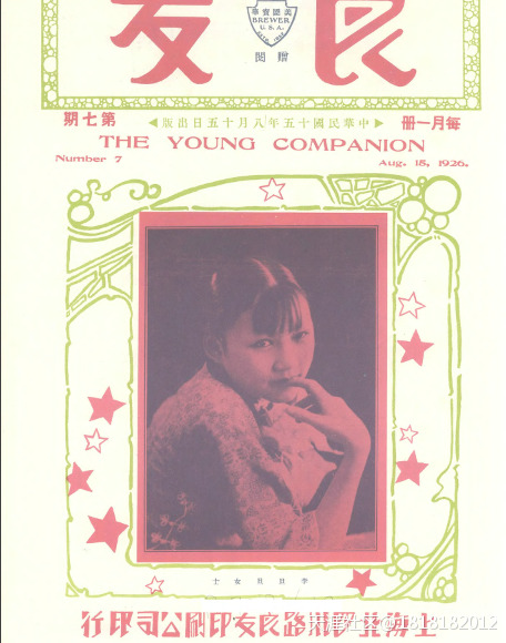 Cover of the Young Companion issue 7, 1926, featuring actress Li Dandan.