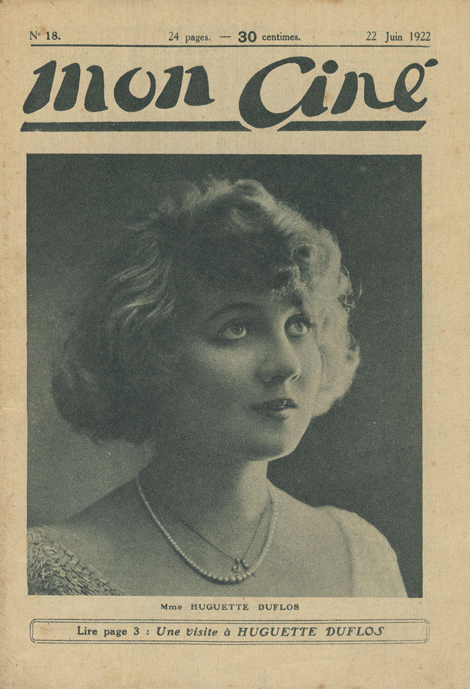 Huguette Duflos on the cover of French magazine Mon Ciné, 22nd June 1922.