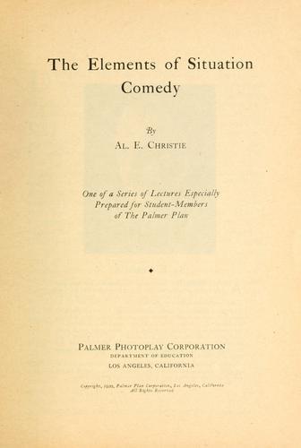 Cover of Al E. Christie, The Elements of Situation Comedy (1920).