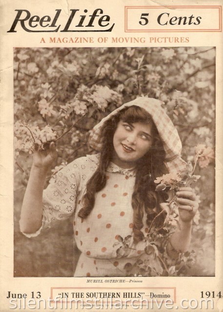 Muriel Ostriche on the cover of the June 13, 1914 issue of Reel Life magazine, which was the in-house magazine of the Mutual distributor.