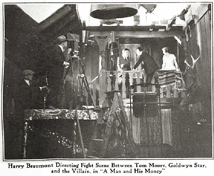 Harry Beaumont directing a scene for the film A Man and His Money (USA,1919).