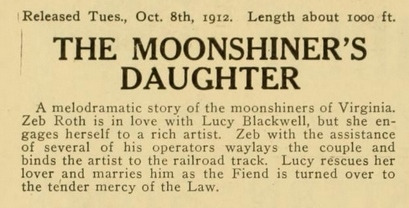 The Moonshiner’s Daughter (USA,1912). IMDB link: http://www.imdb.com/title/tt0357916/