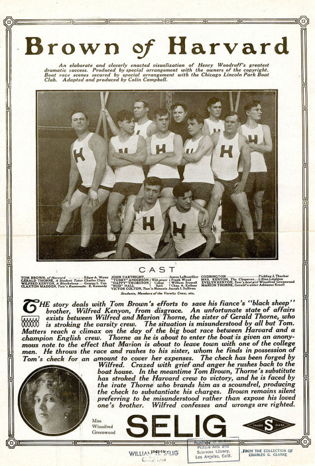 Brown of Harvard is a 1911 silent film based on the play of the same name by Rida Johnson Young. This is a flier advertising the film.