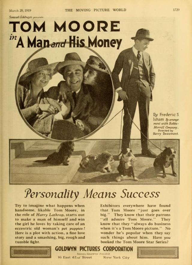 Advertisement in Moving Picture World, March 29th 1919 for the film A Man and His Money (USA,1919).