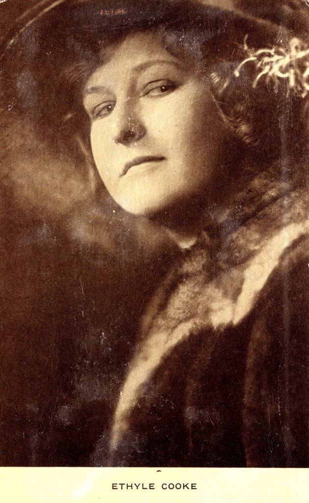 Ethyle Cooke (4 August 1885 – 20 April 1949), was an American silent film actress of the 1910s. In 1915, she married another prominent silent film actor of the time, Harry Benham. Ethyle starred in many popular movies, such as A Small Town Girl, Stronger than Death, and The Fugitive. Wikipedia link: https://en.wikipedia.org/wiki/Ethyle_Cooke