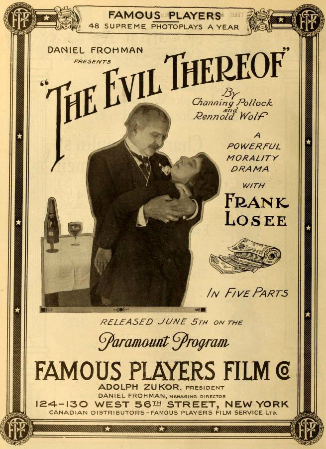 Advertisement in The Moving Picture World for the American film The Evil Thereof (1916).