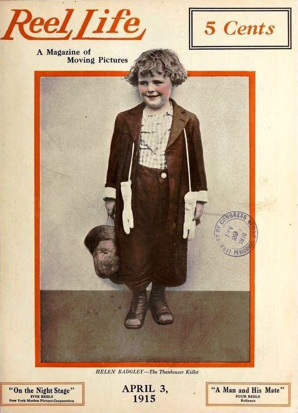 American child actress Helen Badgley (1908 – 1977) on the cover of the April 3, 1915 Reel Life magazine.