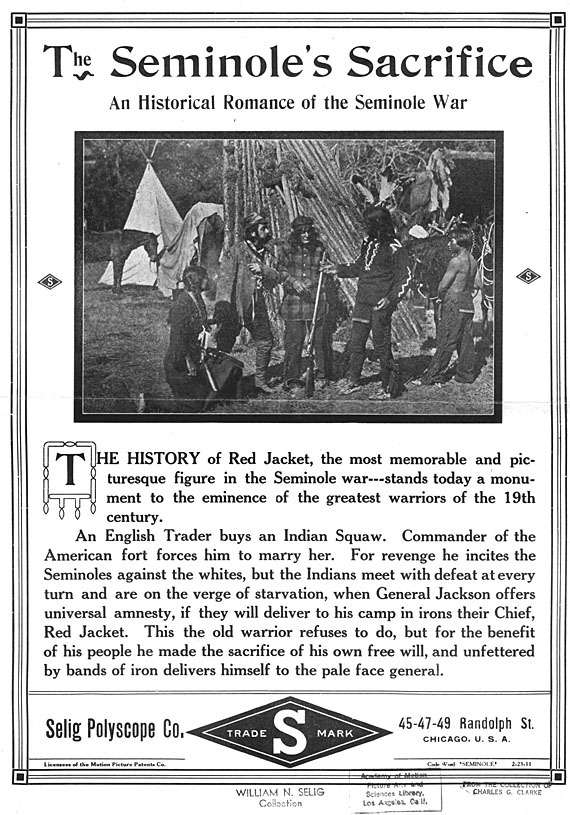 The Seminole’s Sacrifice (USA,1911) advertisement.
