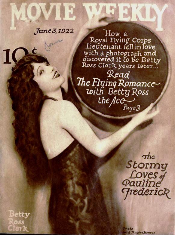 Actress Betty Ross Clarke (misspelled as Clark), on the cover of the June 3rd 1922 Movie Weekly, United States.