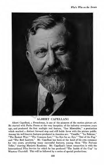 Albert Capellani (23 August 1874 – 26 September 1931) was a French film director and screenwriter of the silent era. He directed films between 1905 and 1922. Wikipedia link: https://en.wikipedia.org/wiki/Albert_Capellani