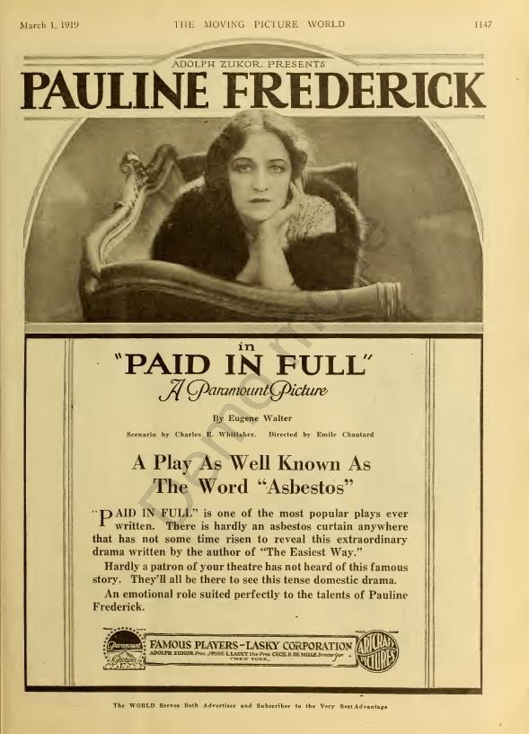 Paid in Full (USA,1919). IMDB link: https://www.imdb.com/title/tt0010548/
