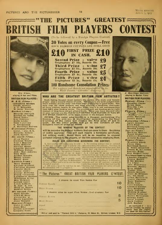 A page of English magazine Pictures and the Picturegoer, April 03rd 1915.
