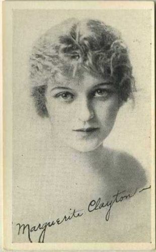Marguerite Clayton (April 12, 1891 – December 20, 1968) was an American actress of the silent era. She appeared in 179 films between 1909 and 1928 many of which were westerns with Broncho Billy Anderson and Harry Carey. Wikipedia link: https://en.wikipedia.org/wiki/Marguerite_Clayton