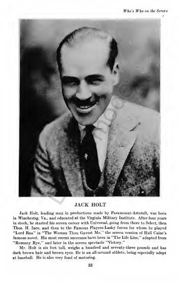 Jack Holt (May 31, 1888 – January 18, 1951) was an American motion picture actor in both silent and sound movies, particularly Westerns. Wikipedia link: https://en.wikipedia.org/wiki/Jack_Holt_(actor)