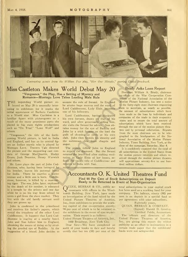 Picture taken from Motography –The Motion Picture Trade Journal, Chicago, the USA, May 04th 1918 issue.