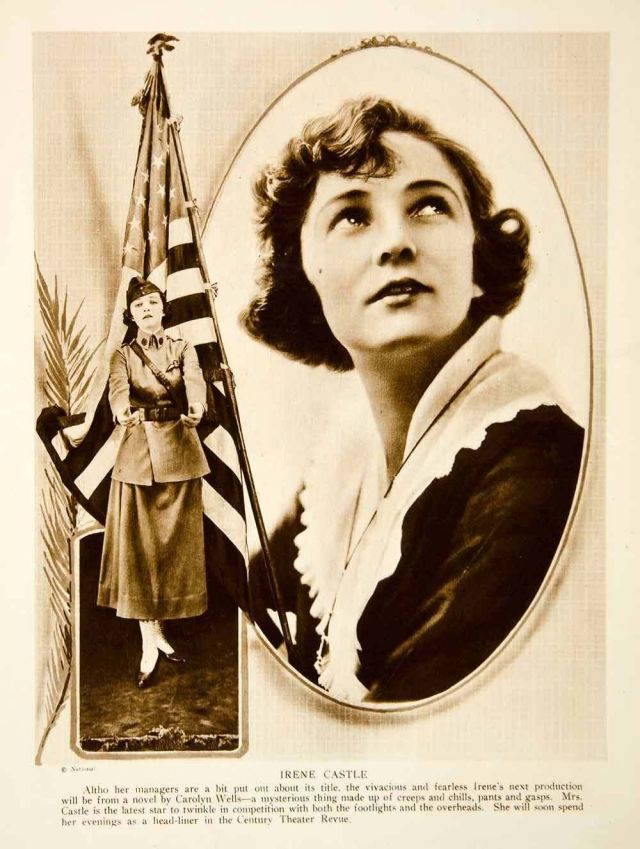 Irene Castle (1893 – 1969) Irene Castle and her husband Vernon Castle (born Vernon Blyth) were the best known ballroom dancers of the early 20th century. IMDB link: https://www.imdb.com/name/nm0145274/bio/