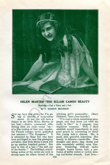 Helen Marten (c. 1894-unknown), was a silent film actor known as “The Gibson Girl.” Wikipedia link: https://en.wikipedia.org/wiki/Helen_Marten_(silent_film_actor)