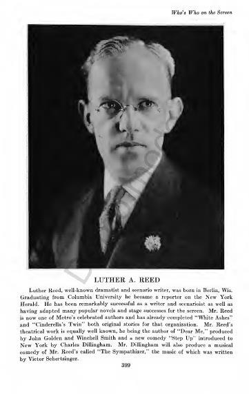 Luther Reed (July 14, 1888 – June 15, 1961) was an American screenwriter and film director. Wikipedia link: https://en.wikipedia.org/wiki/Luther_Reed