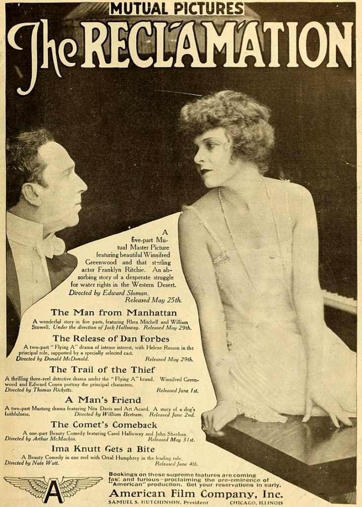 Advertisement in The Moving Picture World for the American film The Reclamation (1916).
