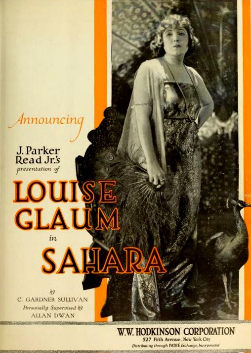 Ad for the American film Sahara (1919) with Louise Glaum, in color insert after page 1106 of the May 24, 2014 Moving Picture World.