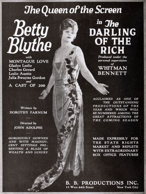 The Darling of the Rich (USA, 1922). IMDB link: https://www.imdb.com/title/tt0013052/
