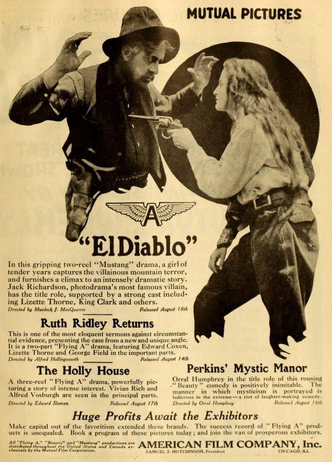 Advertisement in Moving Picture World for the American film El Diablo (1916).