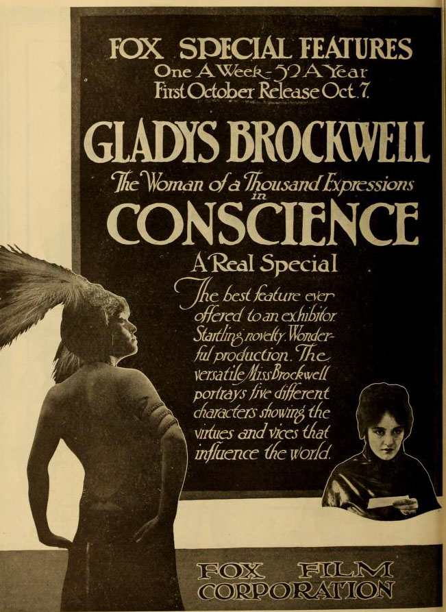 Advertisement in Moving Picture World for the American film Conscience (1917) with Gladys Brockwell.