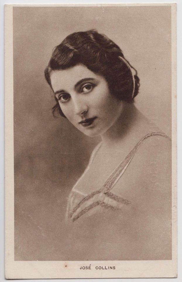 Jose Collins (sometimes styled José Collins, 23 May 1887 – 6 December 1958) was an English actress and singer celebrated for her performances in musical comedies and early motion pictures. Wikipedia link: https://en.wikipedia.org/wiki/Jose_Collins